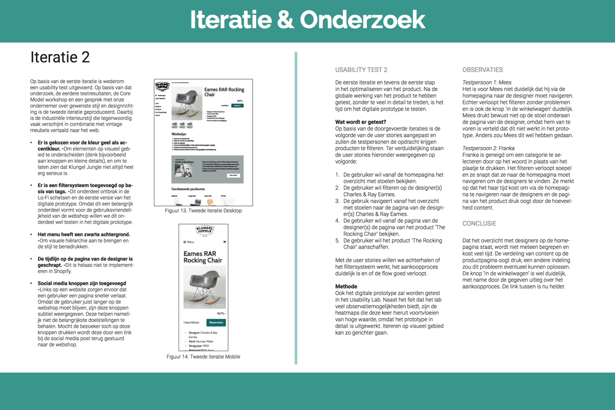 Klungel Jungle is een éénmans vintage meubelwinkel die voorheen geen website had. Voor een school opdracht van CMD was het nodig om een bedrijf te vinden die hulp kon gebruiken met zijn/haar website. In een team van vijf hebben wij gekozen om Johan Klungel van Klungel Jungle te helpen, omdat hij graag afstand wilde nemen van zijn offline winkel en graag wil overstappen naar een web winkel. In een process van 19 weken hebben wij een webshop en bussiness plan gerealiseerd voor Johan. We hebben gebruik gemaakt van meerdere onderzoeksmethoden die erg nuttig waren om het concept te ontwikkelen
